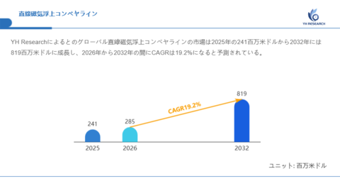 YH Researchによるとのグローバル直線磁気浮上コンベヤラインの市場は2025年の241百万米ドルから2032年には819百万米ドルに成長し、2026年から2032年の間にCAGRは19.2%になると予測されている。